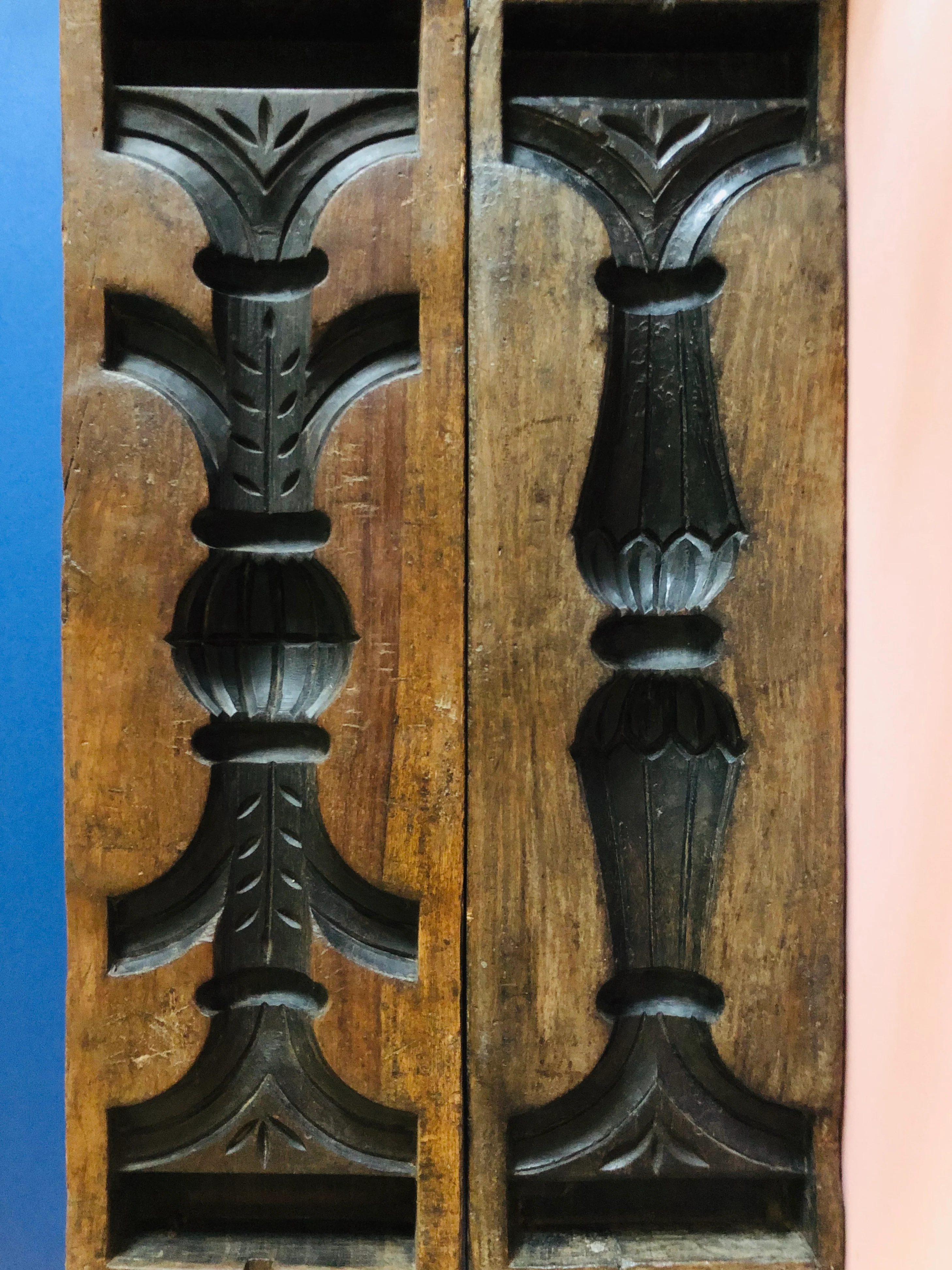 Hand carved heavy solid wood pieces would have been in a matching pair