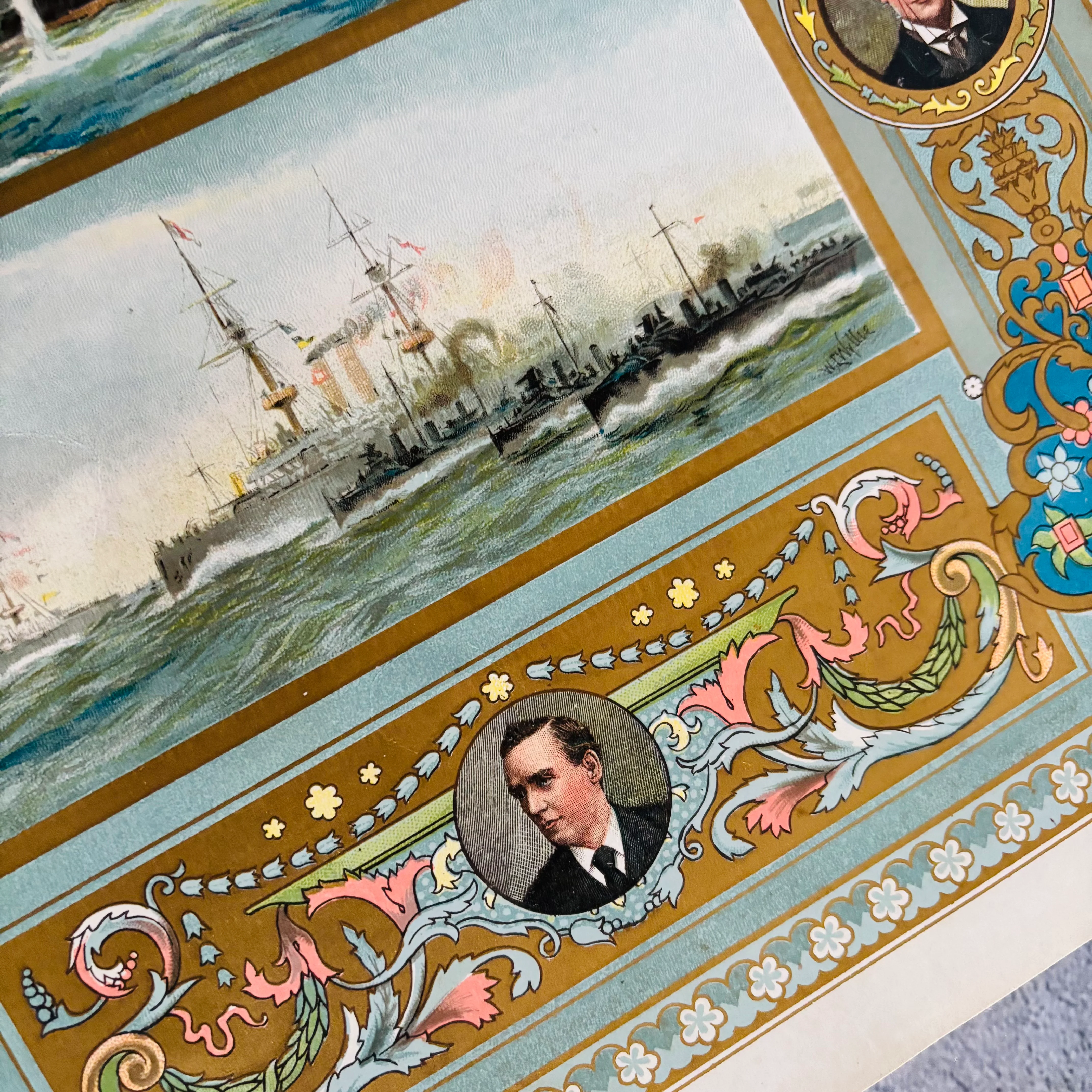 222This is an antique historical original antique Chromolithograph of Navy Ships Her Majesty’s Glorious Jubilee 1897