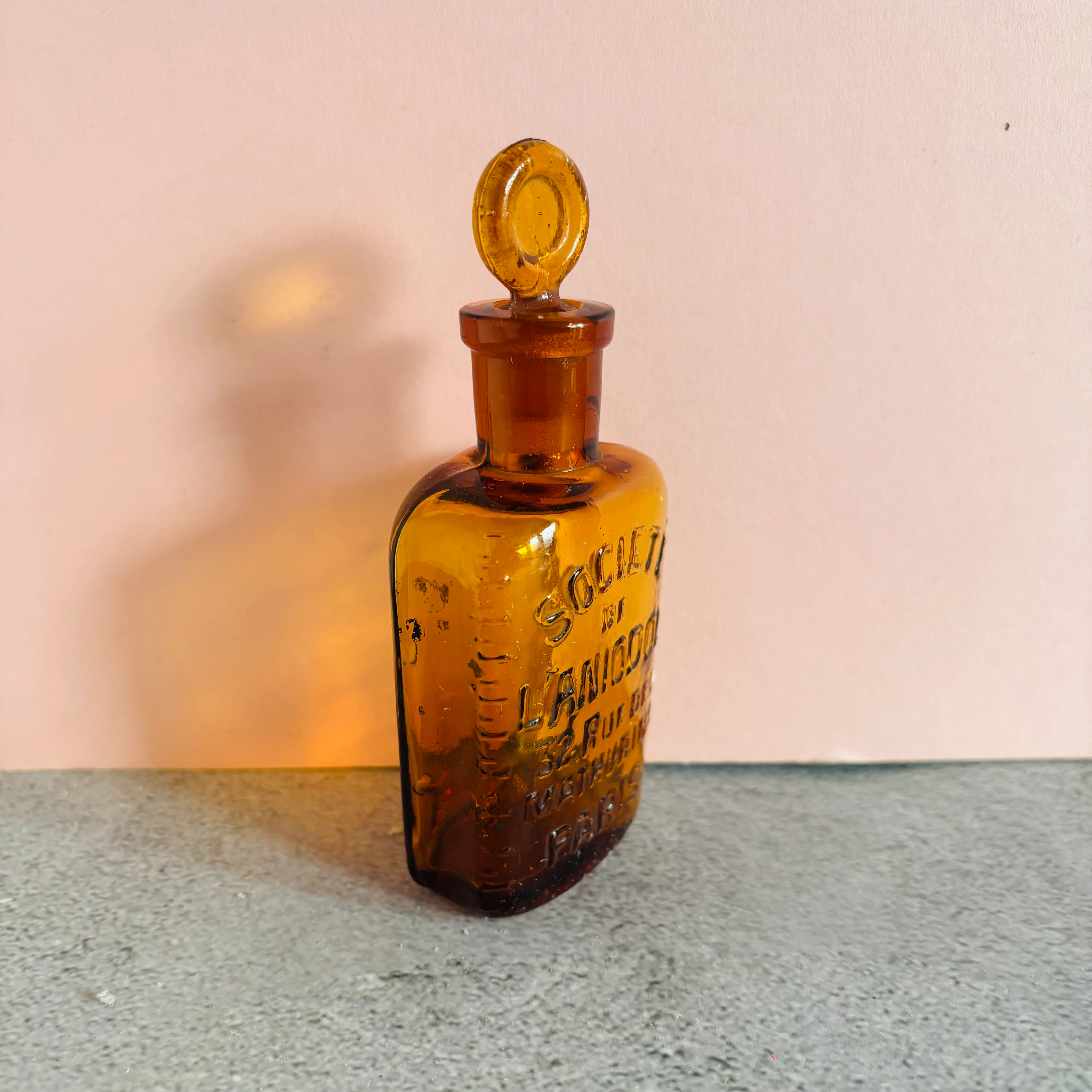 Lore is a small apothecary amber glass bottle with his original glass stopper.
