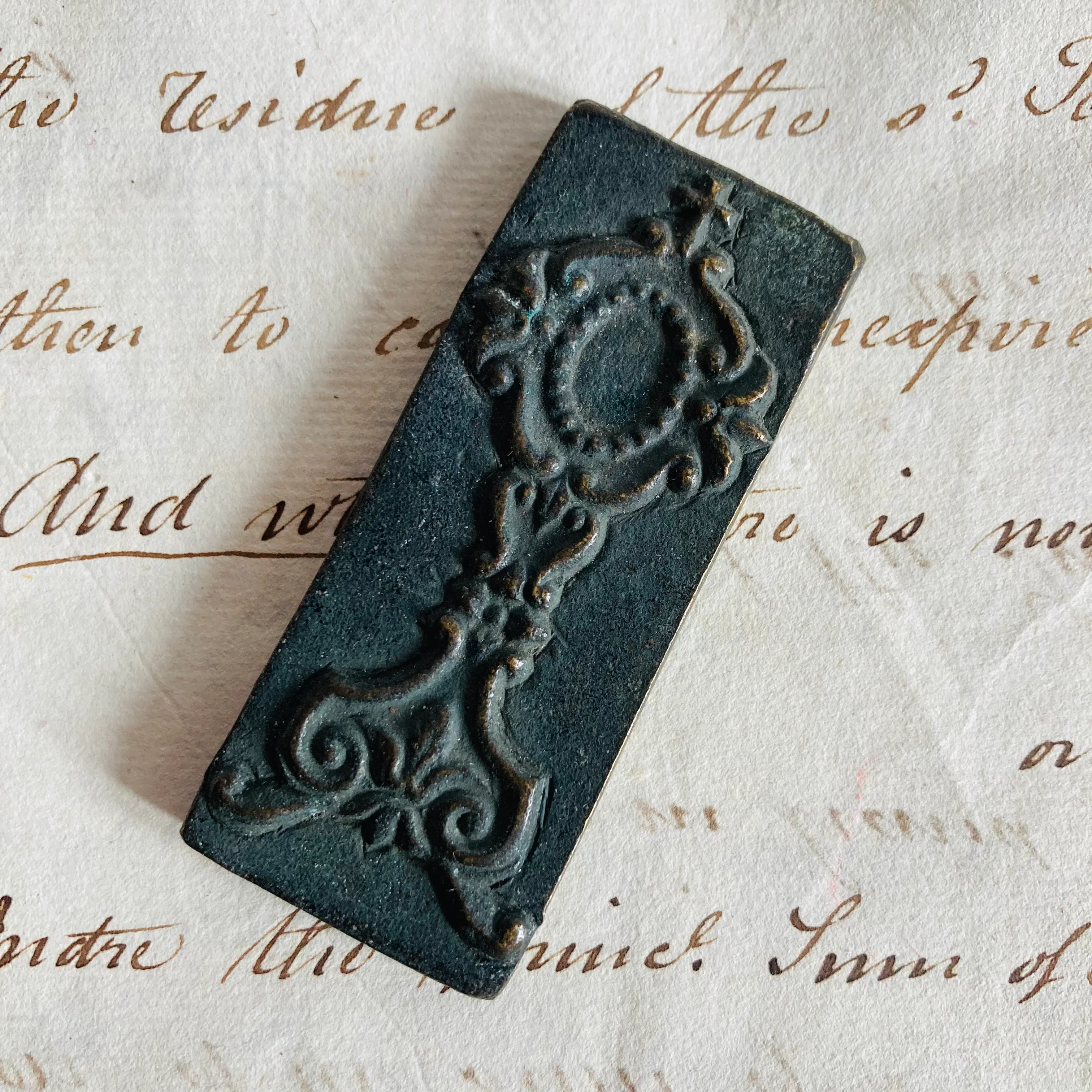 The Director Gene is a rare and very cute miniature bronze mould or stamp with Art Nouveau designs work