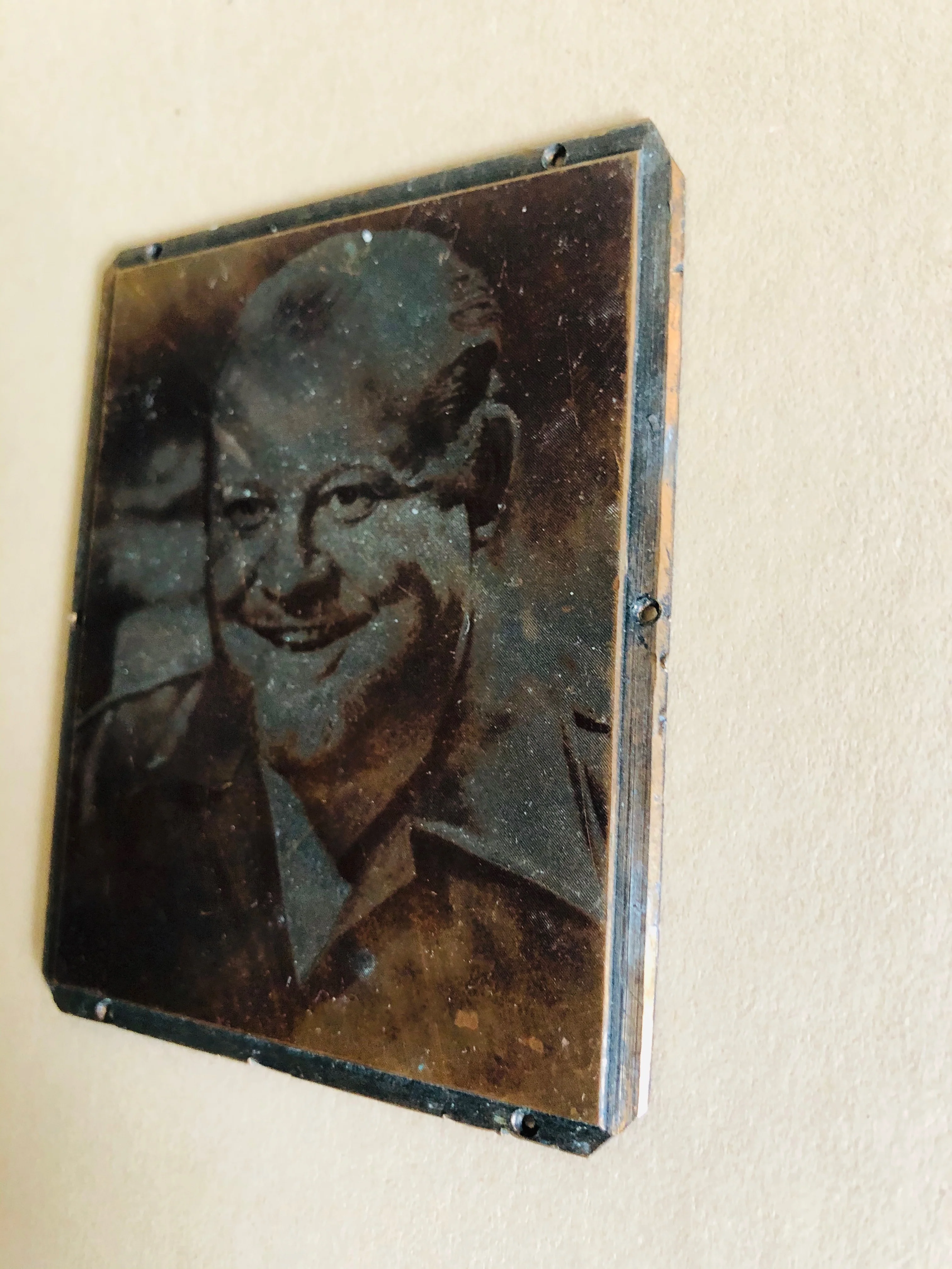 The Director Jamie is a small vintage copper printing plate featuring a detailed portrait of a smiling gentleman dressed in casual attire. This commercial plate, dating from the early 20th century, is believed to be connected to the Russian play Don Cossack Chorus & Dance, reflecting cultural and theatrical influences of the era. As an authentic piece of printing history, it offers valuable insight into the artistic and social context of its time, making it a significant collectible for enthusiasts of vintage printing and theatrical memorabilia.