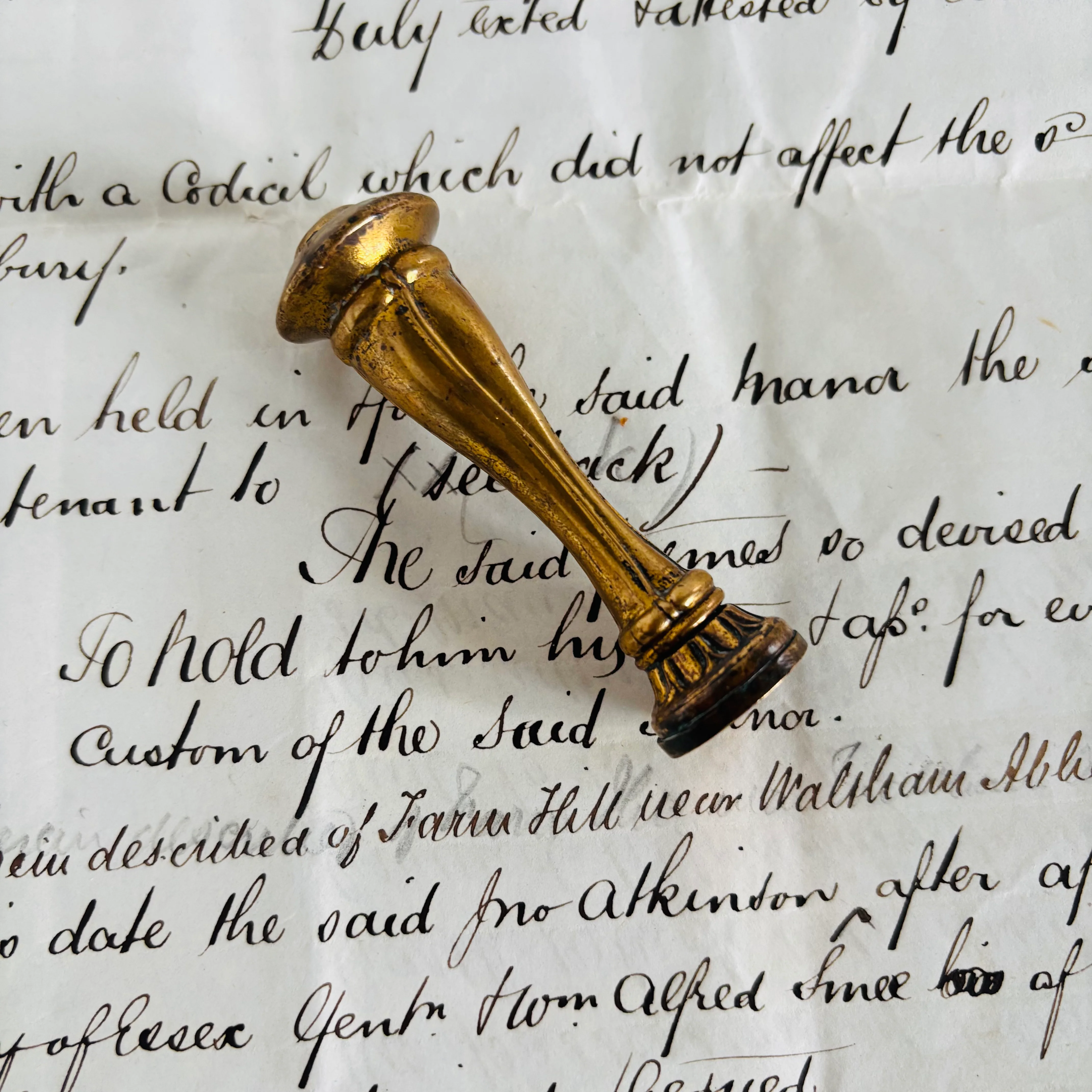 Meet The Director Simon, he is a brass wax seal stamp with a flair for the dramatic. I discovered Simon at a local antiques stall in London, the only seal on that table amongst a collection of antique beaded jewellery.