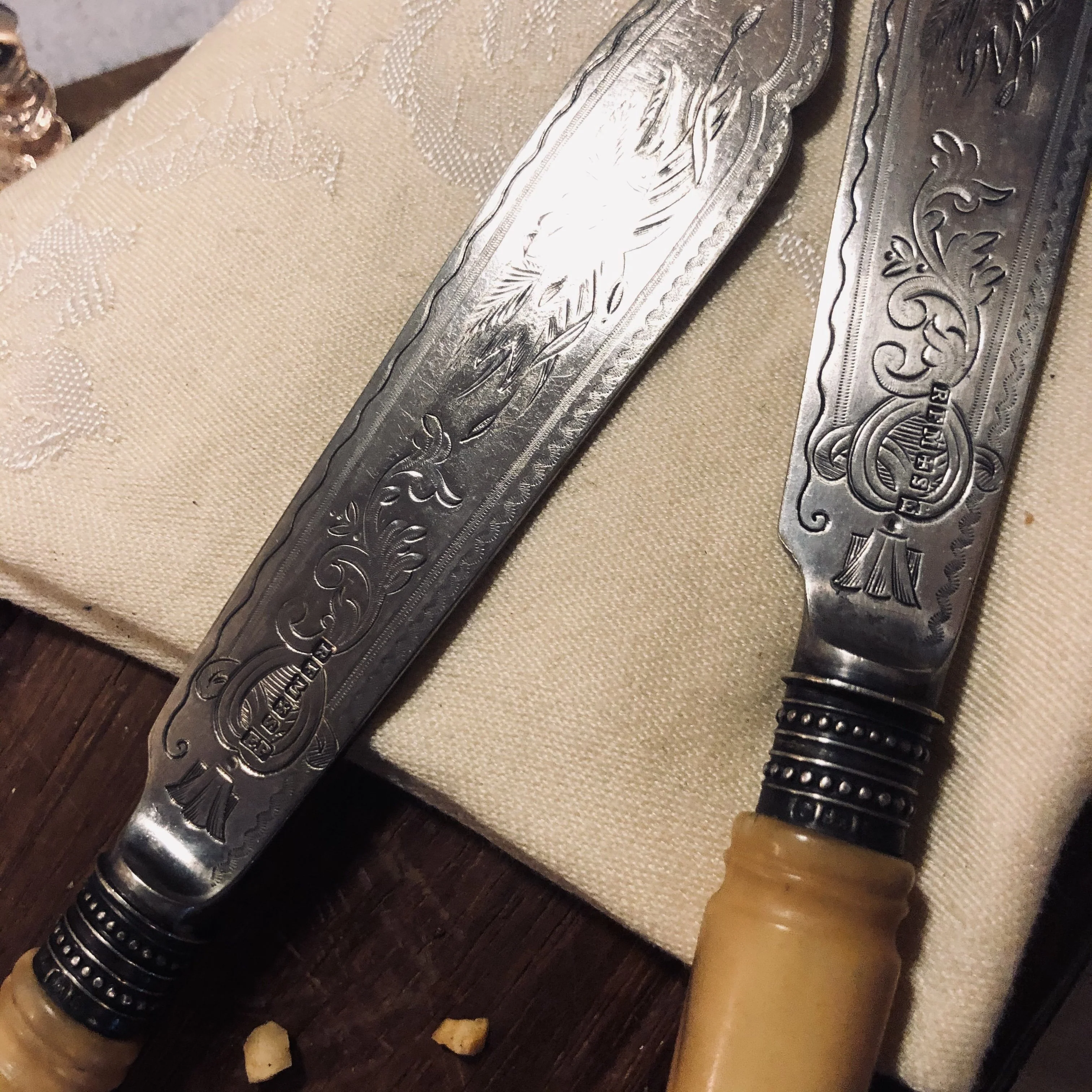 The Headhunter Rudolph - Antique Silver Mounted Engraved Fish Knives