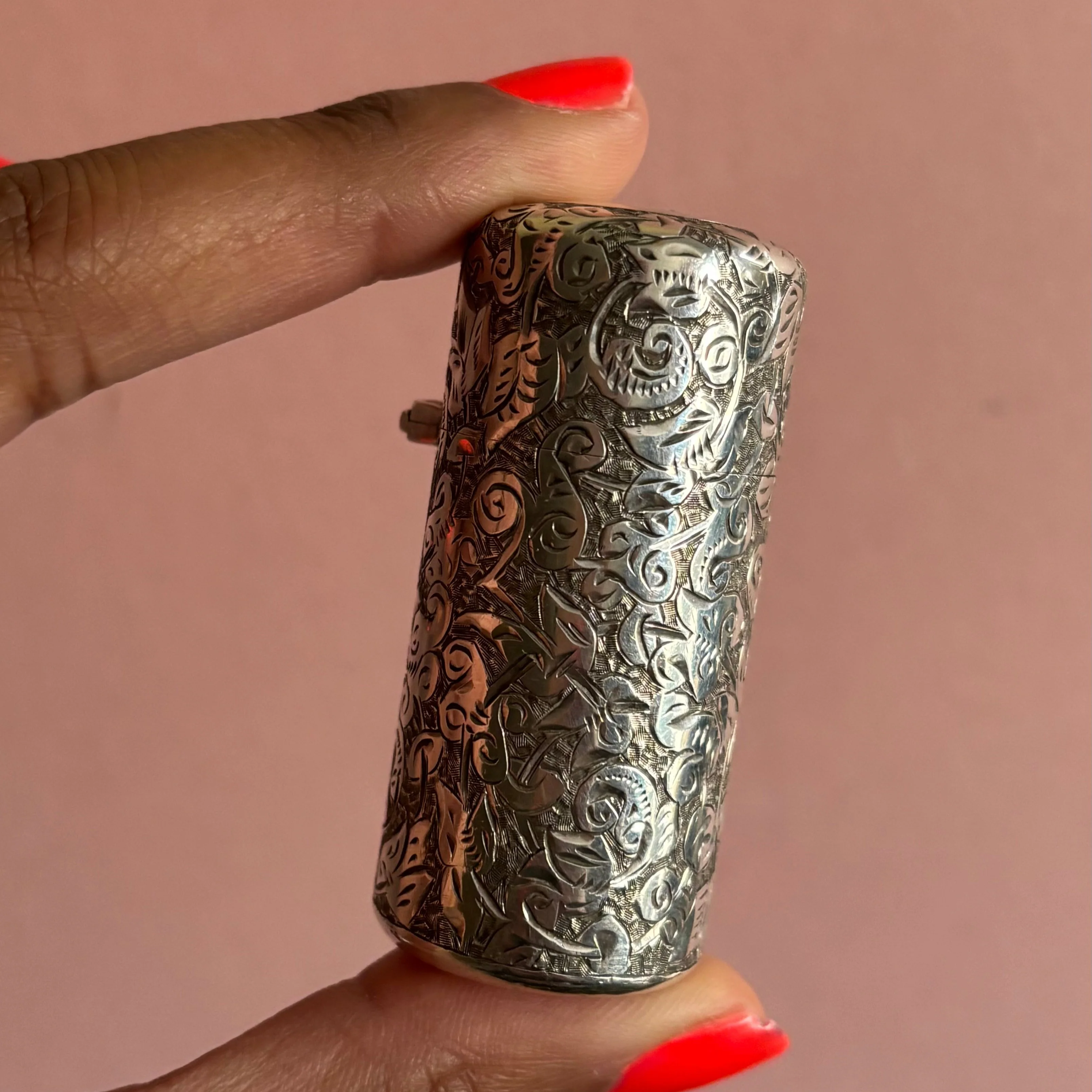 Her container with fully engraved floral, leaf, swirl and acanthus leaves design