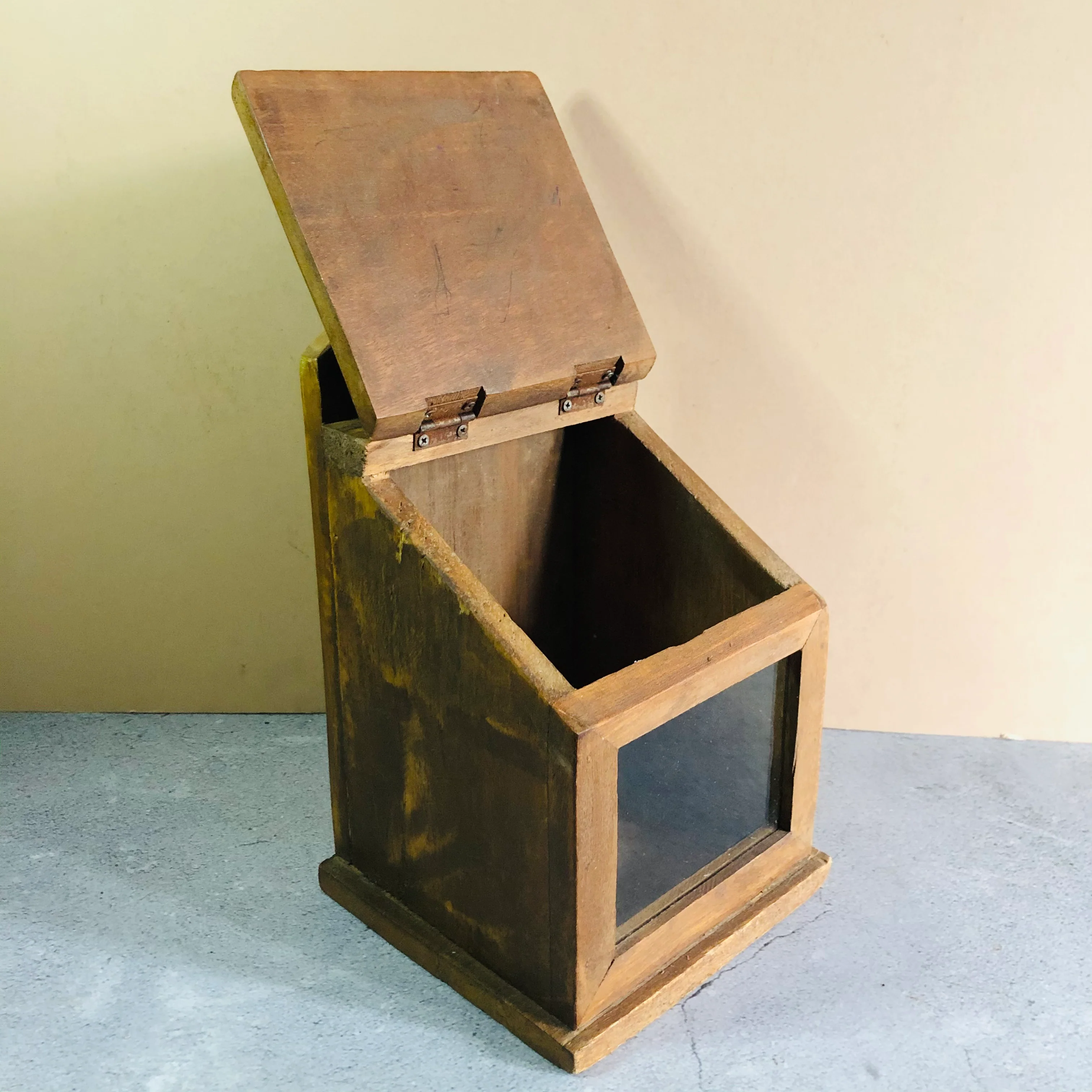 Terry is a simple traditional shape salt box, but his unusual glass front makes him rare and desirable
